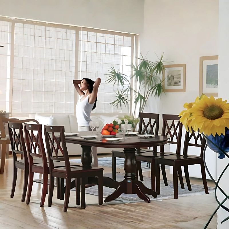 Bàn ăn TB06 mang đến vẻ đẹp quý phái và sang trọng nhờ sự chăm chút tỉ mỉ trong từng đường nét thiết kế, đồng thời sử dụng chất liệu gỗ tự nhiên cao cấp. Mặt bàn oval và chân trụ tiện cong tạo nên sự hài hòa, tinh tế, giúp không gian trở nên thu hút và ấm cúng hơn.