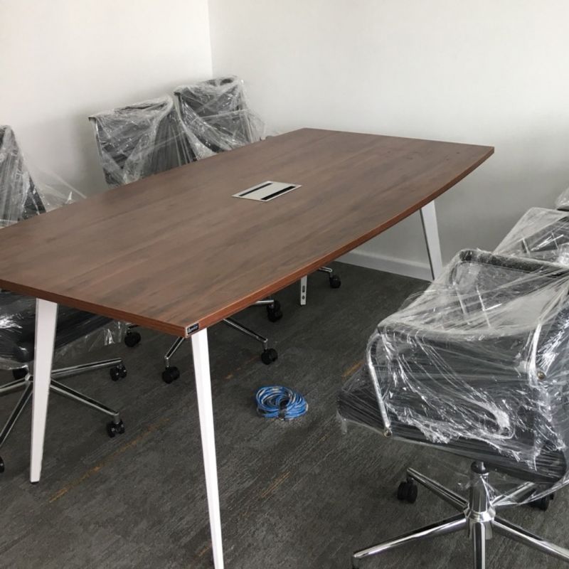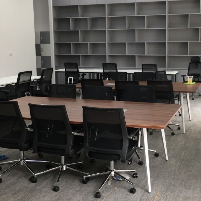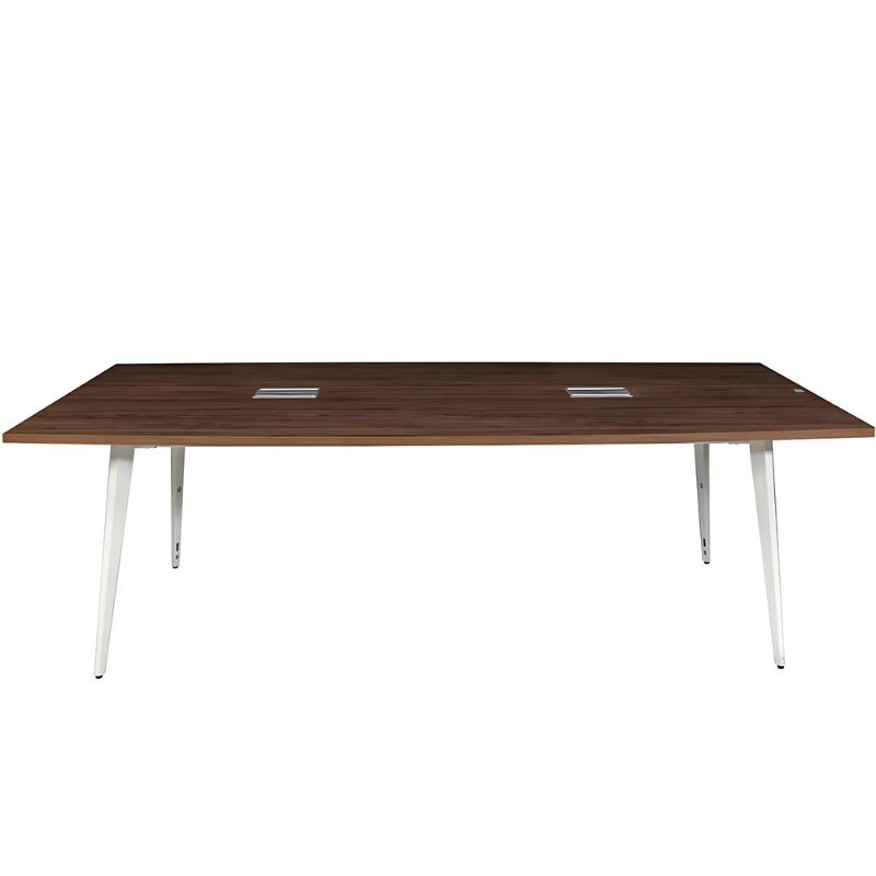 - Mặt bàn gỗ mỏng với các góc cạnh sắc nét, kết hợp cùng chân sắt thanh mảnh, tạo cảm giác thông thoáng cho người tham gia, đồng thời giảm bớt căng thẳng cho văn phòng làm việc.