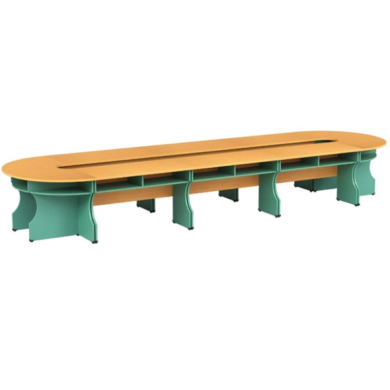 Chiếc bàn này không những sở hữu vẻ ngoài đẹp mắt, sang trọng mà còn mang đến cho khách hàng nhiều sự tiện lợi. Phần khoang trống bên trong còn được thiết kế tích hợp thêm các đợt tài liệu nhằm giúp lưu trữ các đồ vật liên quan đến công việc sao cho gọn gàng và đẹp mắt. Mặt bàn rộng rãi, cho phép đặt máy tính, tài liệu hay các thiết bị họp. Để mang lại sự thoải mái và hài hòa trong quá trình họp thì nên kết hợp với ghế chân quỳ hoặc ghế xoay để tạo nên sự đồng điệu.