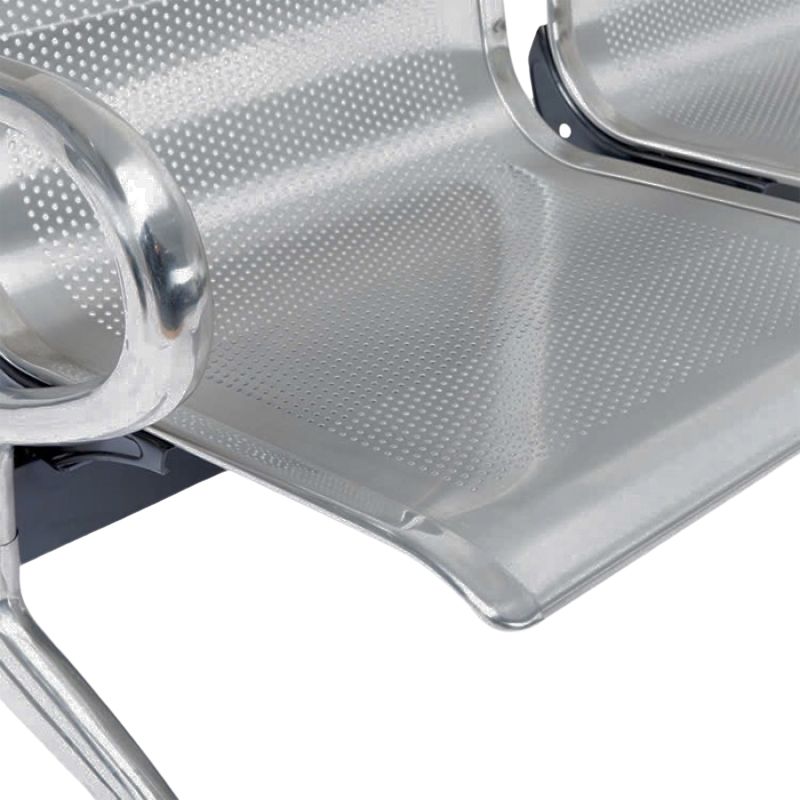 Ưu điểm đầu tiên có thể nhận thấy rõ ràng từ mẫu ghế băng chờ inox SS4 chính là kiểu dáng hiện đại, tối tân và tinh tế. Sở hữu thiết kế 4 chỗ ngồi hiện đại, có tựa lưng và đệm ngồi rộng rãi đi kèm nên thư giãn tốt nhất. Các phần tiếp xúc có đột lỗ tròn thoáng khí và dễ vệ sinh nên không bị bí bách trong thời gian dài sử dụng. Toàn bộ phần đệm ngồi, tựa lưng hay tay vịn đều là chất inox dày dặn nên chịu lực, bền bỉ và mang lại tuổi thọ cao. Không thể không kể đến khung giằng cho chân ghế, chịu lực và không bị gập ghềnh.