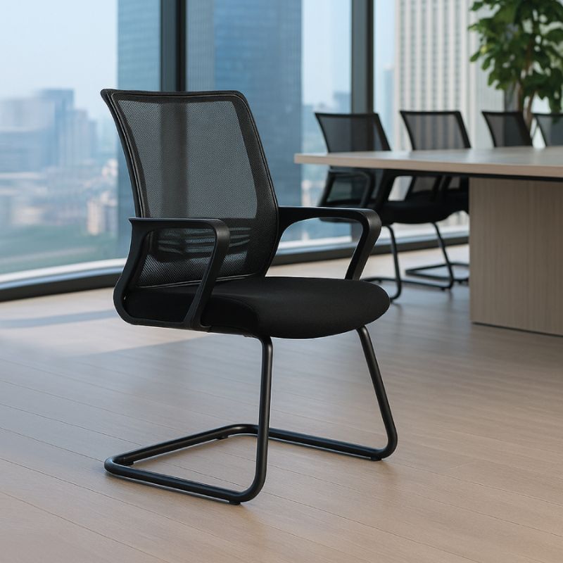 Thiết kế tinh gọn giúp dễ dàng bố trí trong phòng họp, khu vực tiếp khách, phòng đào tạo hoặc văn phòng cố định mà không gây cảm giác chật chội. Kiểu dáng chân quỳ giữ ghế luôn ổn định, phù hợp với không gian sử dụng chung, nơi cần sự đồng bộ và nghiêm túc. Tay ghế cố định tạo điểm tựa tự nhiên, giúp người ngồi thoải mái hơn trong các buổi họp hoặc trao đổi công việc. Tổng thể hài hòa, dễ kết hợp với nhiều phong cách nội thất hiện đại như bàn hay tủ làm việc.
