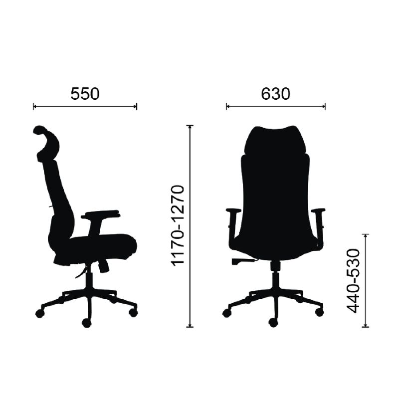 Ghế sở hữu thiết kế tựa lưng cong nhẹ theo hình chữ L, ôm sát cột sống, giúp giảm áp lực vùng thắt lưng khi ngồi lâu. Phần tựa đầu bọc lưới nâng đỡ cổ và vai gáy, giúp người dùng luôn thoải mái trong tư thế làm việc hoặc nghỉ ngơi ngắn giữa giờ. Sự kết hợp hài hòa giữa khung nhựa đen chắc chắn và các đường nét bo mềm mại tạo nên tổng thể tinh tế, hiện đại — đúng chuẩn phong cách quản lý chuyên nghiệp.