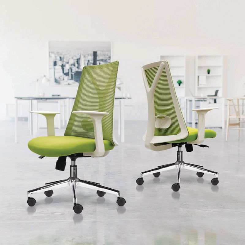 • Kiểu dáng: Thiết kế hiện đại với khung lưng trắng nổi bật, tạo điểm nhấn cho không gian văn phòng.