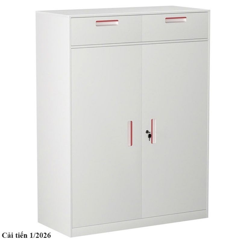 • Tủ sắt sơn tĩnh điện màu trắng S26, tay nắm âm màu cam.